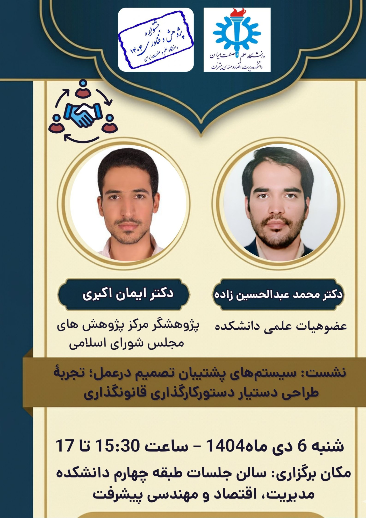 در راستای ارتقای نظام مدیریت دانش در صنایع پیشرو، این نشست با محور «تجارب استقرار مدیریت دانش در صنعت ساخت» فرصتی ارزشمند برای آشنایی دانشجویان و پژوهشگران با رویکردهای کاربردی و چالشهای اجرایی در محیطهای صنعتی است. با حضور متخصص این حوزه، درباره نقش مدیریت دانش در بهبود بهرهوری، انتقال تجربه و توسعه نوآوری در صنعت گفتوگو خواهیم کرد.